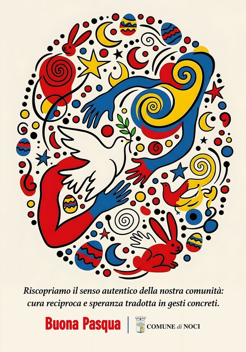 La Pasqua ci invita a fermarci, riflettere e riscoprire il valore della comunità, prendendoci cura gli uni degli altri e trasformando la speranza in gesti concreti. Con questo spirito, rinnoviamo l’impegno a costruire comunità accoglienti e solidali. A tutte le cittadine e a tutti i cittadini di Noci, i più sinceri auguri di una Pasqua serena.